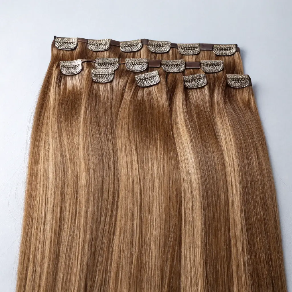 Add instant length and volume with our Clip-In Hair Extensions in a deep natural black shade. These easy-to-apply extensions are perfect for quick transformations and special occasions. Crafted from high-quality synthetic or human hair, they provide a natural look and feel. The clip-in design ensures a secure fit, allowing you to style your hair effortlessly.